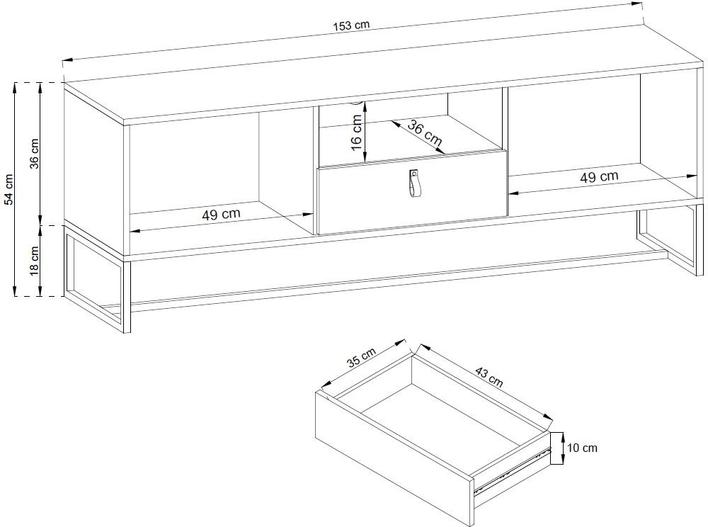 Έπιπλο τηλεόρασης Dark χρώμα Βελανιδιά+black stone 153x54x39cm