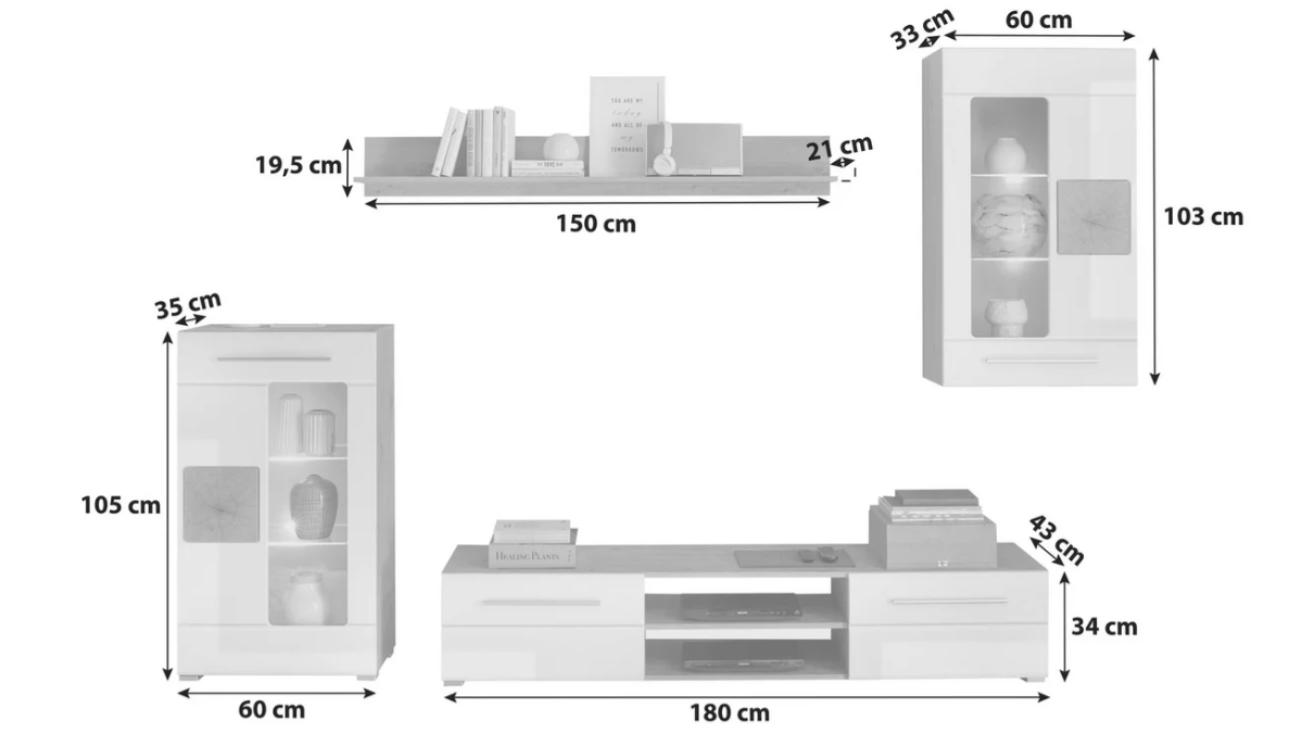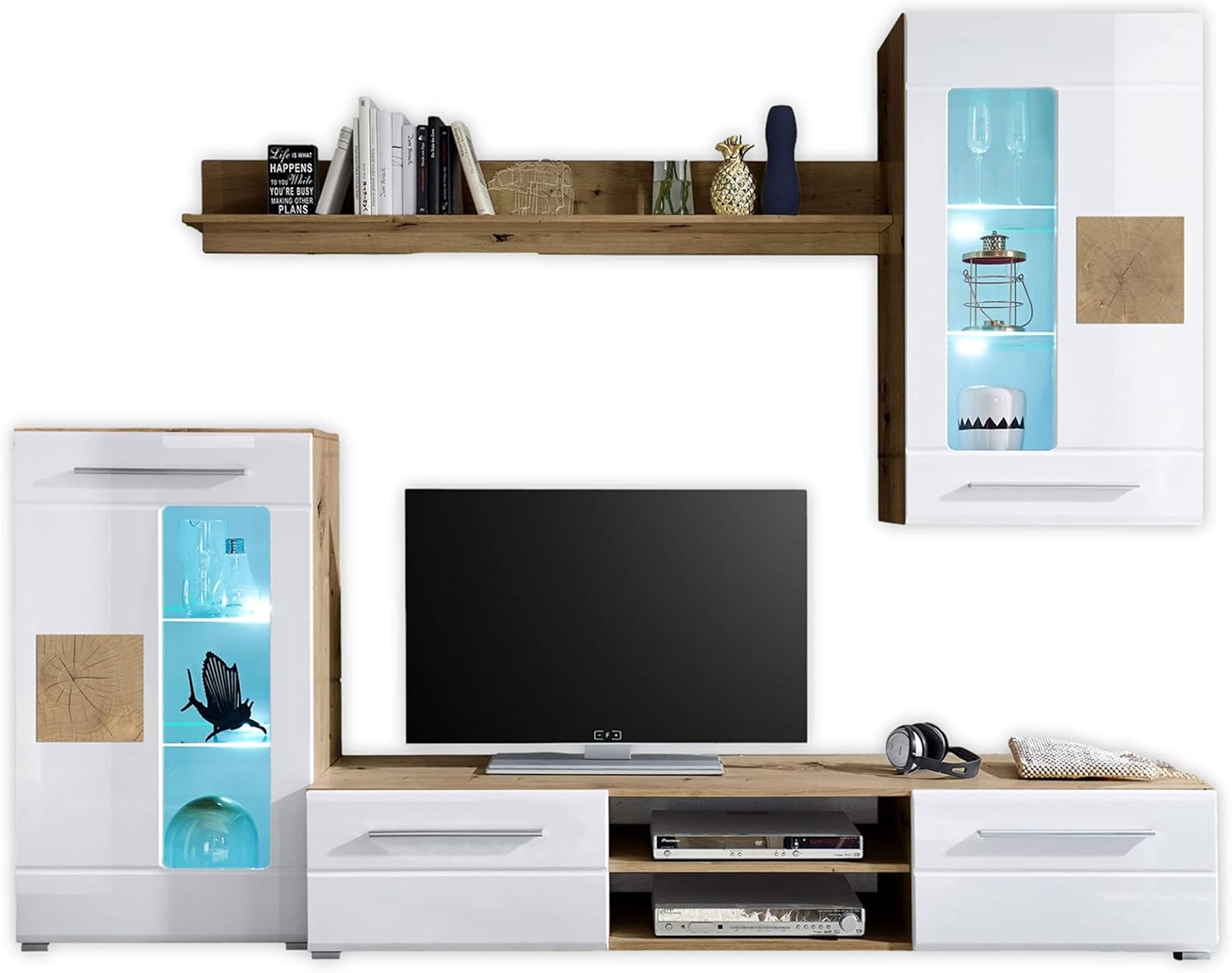 Σύνθεση τοίχου Georgia φυσικό Artisan+Λευκό 240x190x43cm (ΜxΥxΒ)