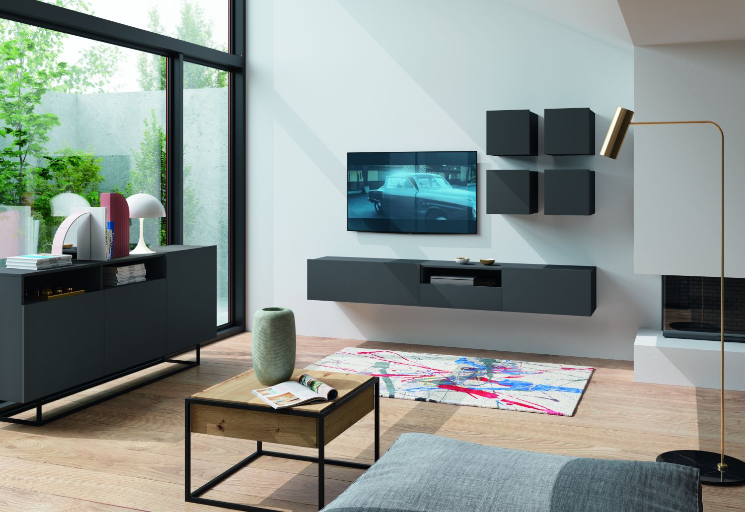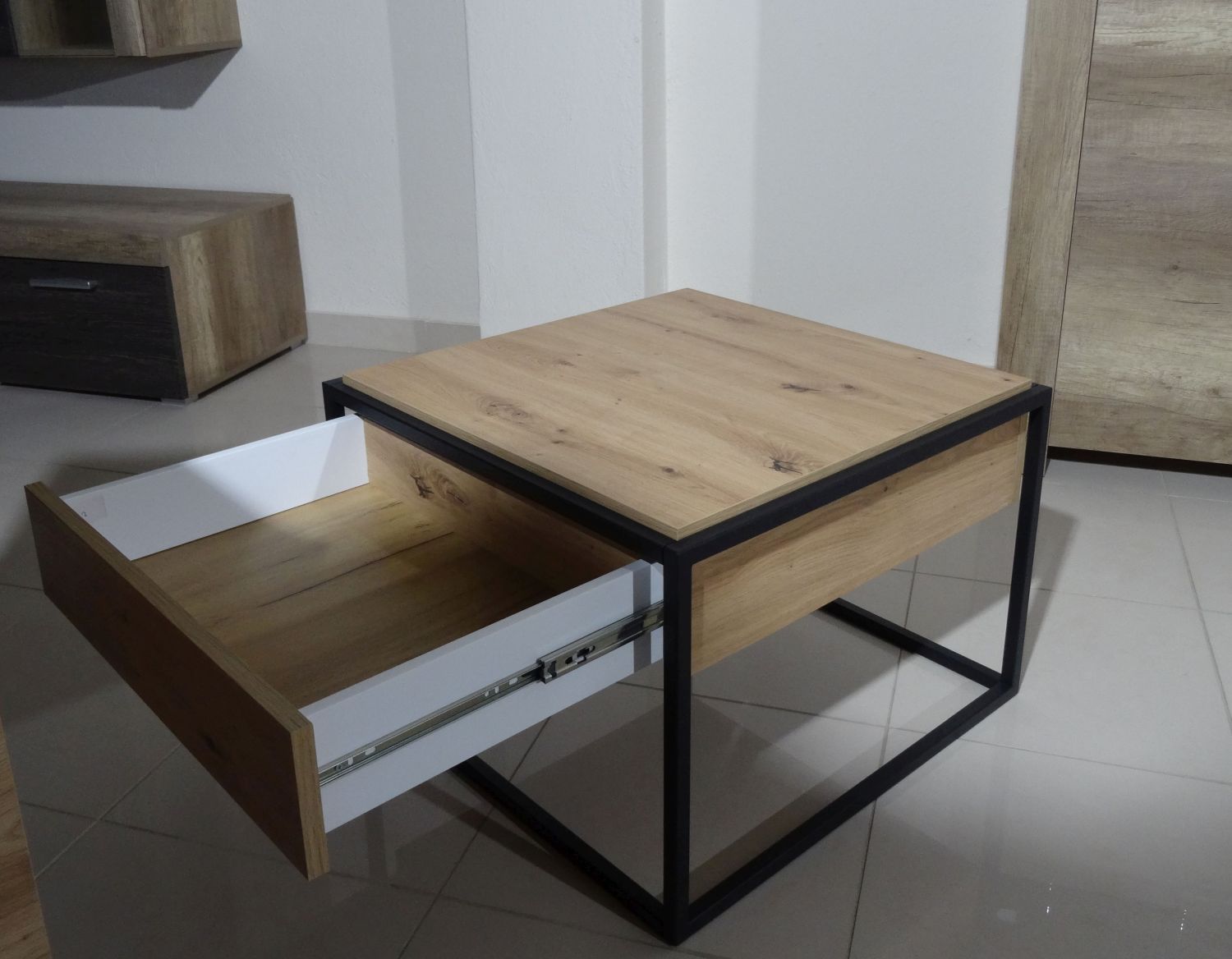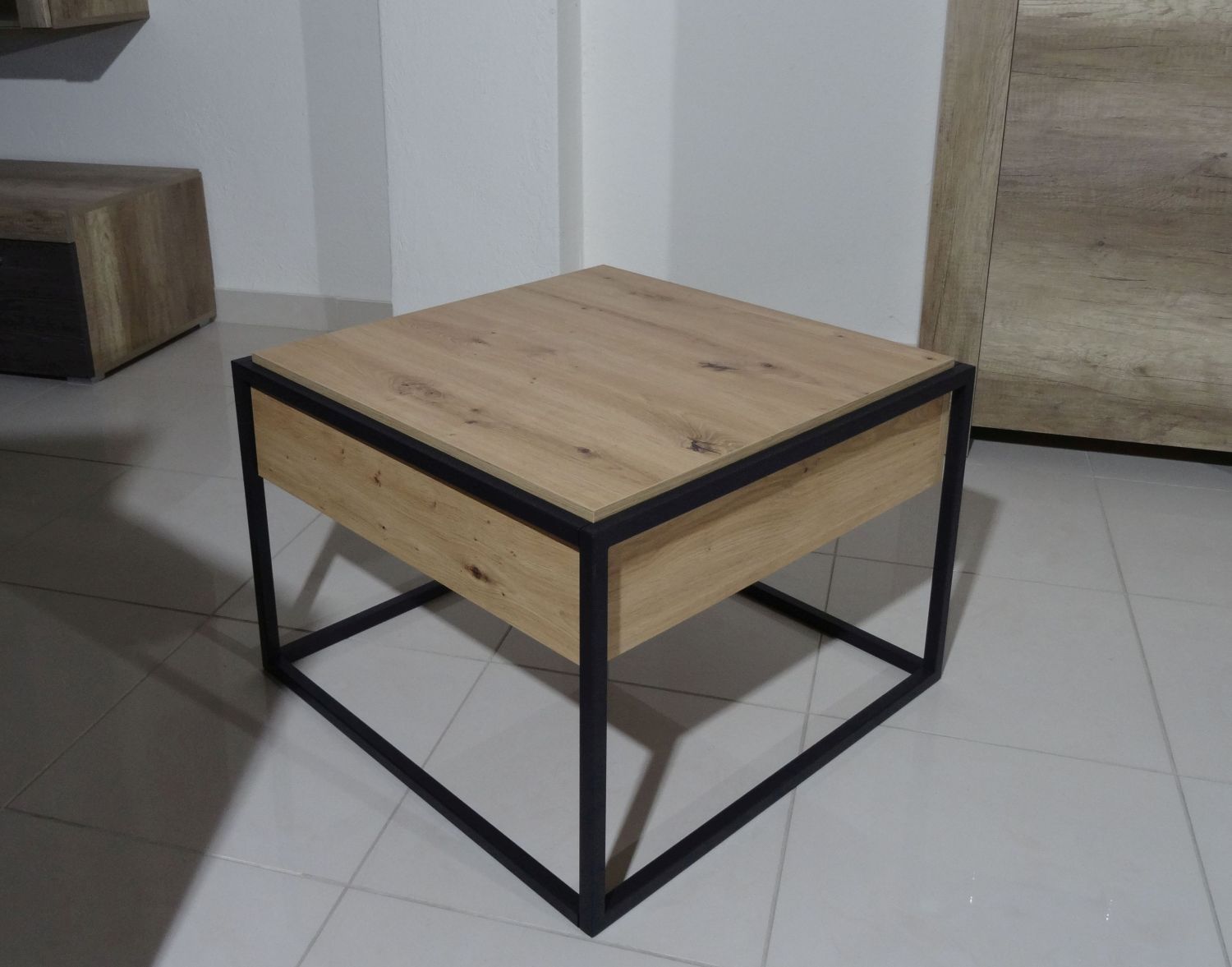 Τραπεζάκι Enjoy με συρτάρι χρώμα Φυσικό Artisan+Μαύρο 60x42x60cm
