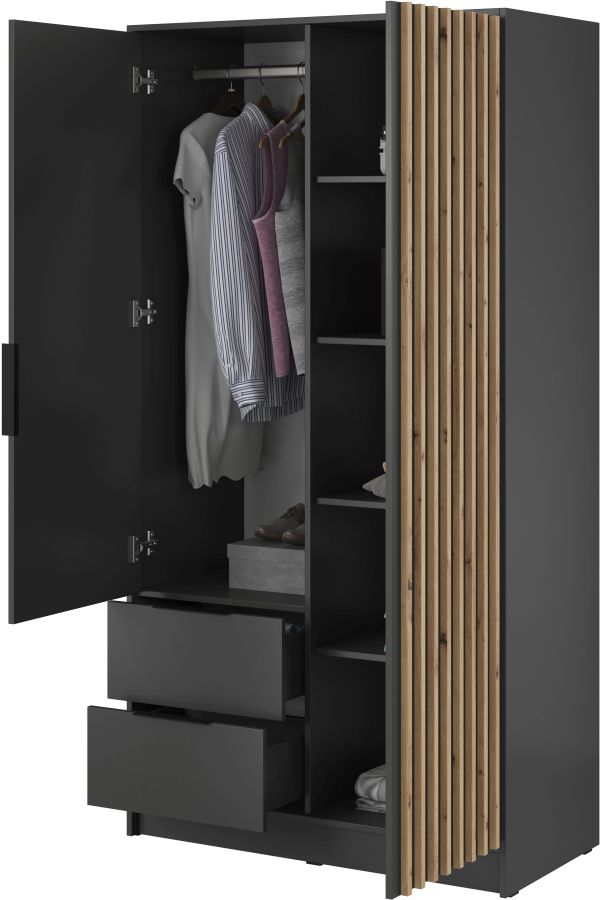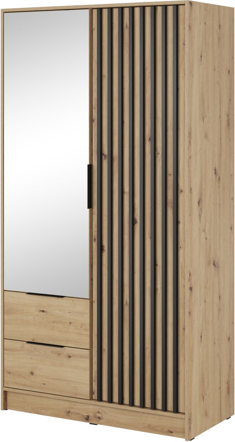 Η ντουλάπα Nelly είναι μια πρακτική επιλογή ντουλάπας που θα αποδειχθεί χρήσιμη, μεταξύ άλλων: στην κρεβατοκάμαρα, στο γκαρνταρόμπα ή στο χολ. Συνδυάζει λειτουργικότητα και μοντέρνο σχεδιασμό. Διαθέτει 2 βαθιά συρτάρια 2 αποσπώμενα εσωτερικά ράφια στο δεξί ντουλάπι και κάθετες λωρίδες από MDF 18 mm στις πόρτες. Η ντουλάπα διατίθεται επίσης σε άλλα μεγέθη και χρώματα και σε έκδοση με καθρέφτη.